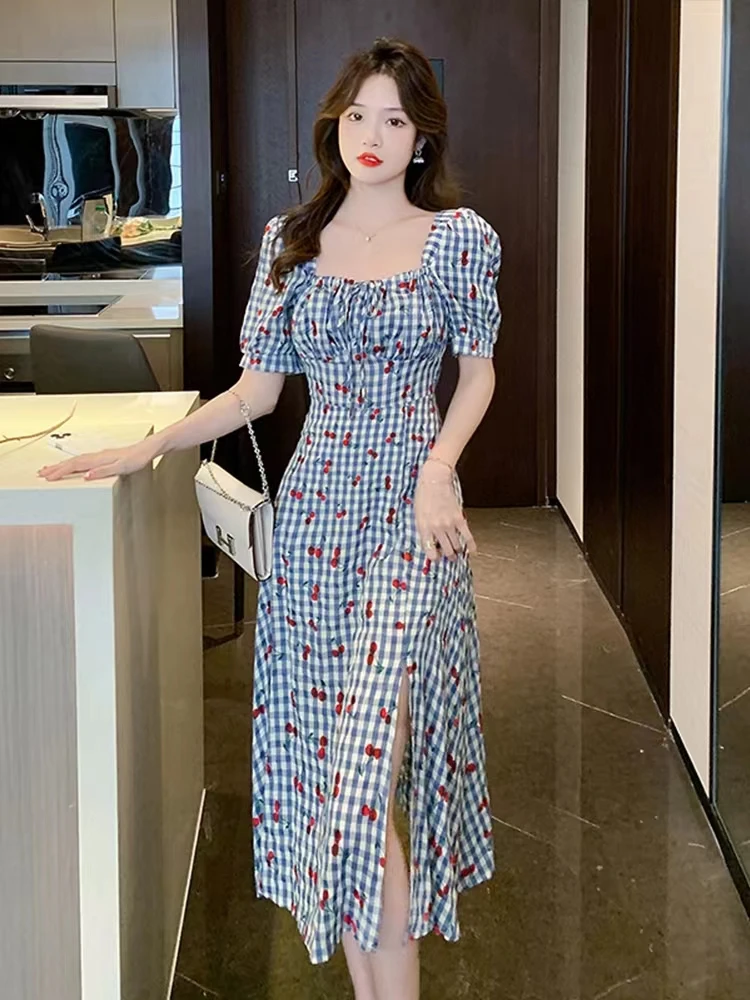 Платье женское с квадратным вырезом, коротким рукавом и цветочным принтом