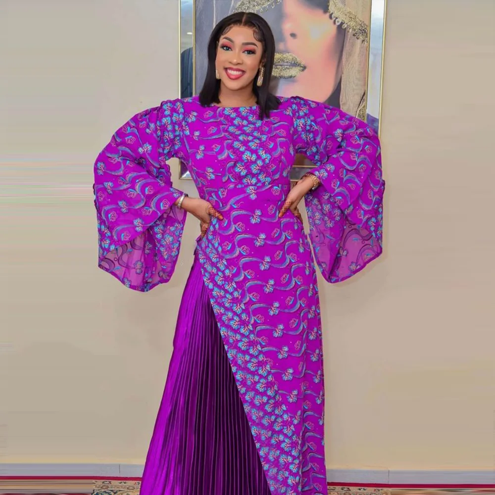Платье женское с круглым вырезом, Расклешенным рукавом и принтом