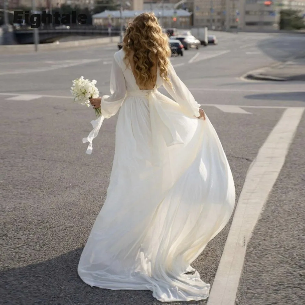 Платье женское с круглым вырезом, открытой спиной и длинными рукавами