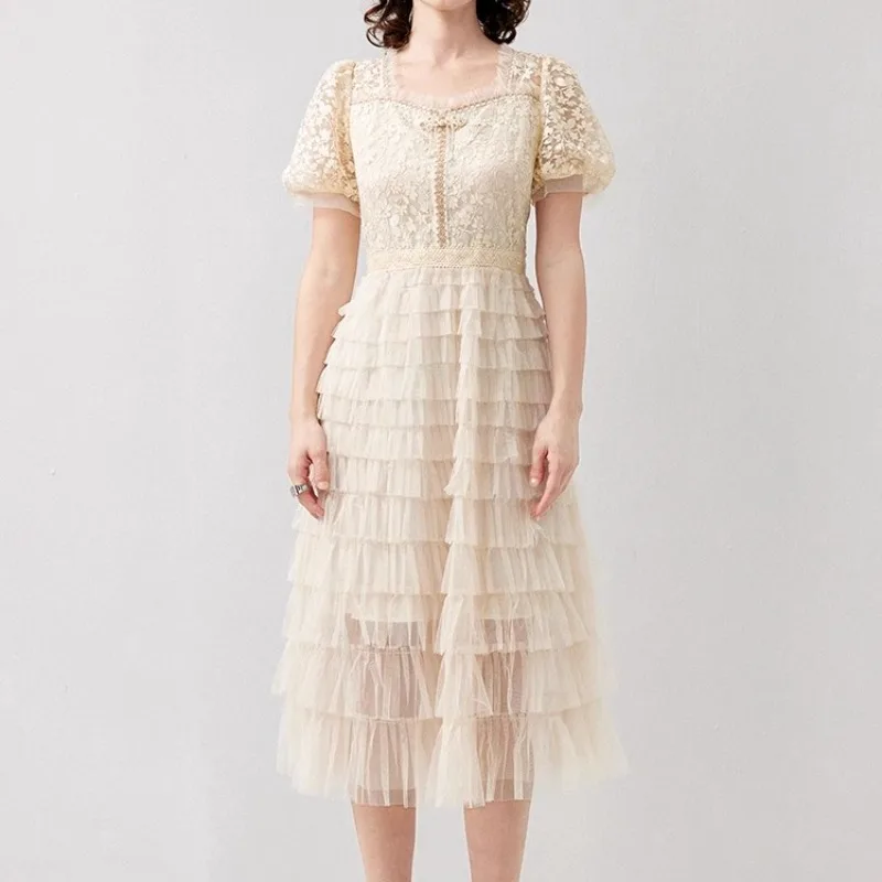 Платье женское с V-образным вырезом, элегантное кружевное праздничное платье абрикосового цвета в стиле пэчворк, модельная одежда в уличном стиле