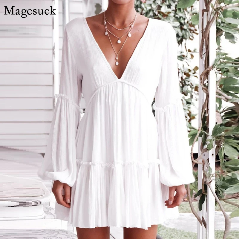 Платье женское шифоновое короткое с V-образным вырезом и рукавами-фонариками