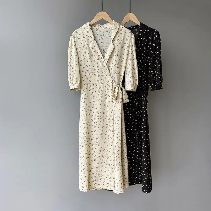 Платье женское шифоновое с V-образным вырезом и цветочным принтом, длинное платье с рукавами-фонариками и V-образным вырезом, лето 2021