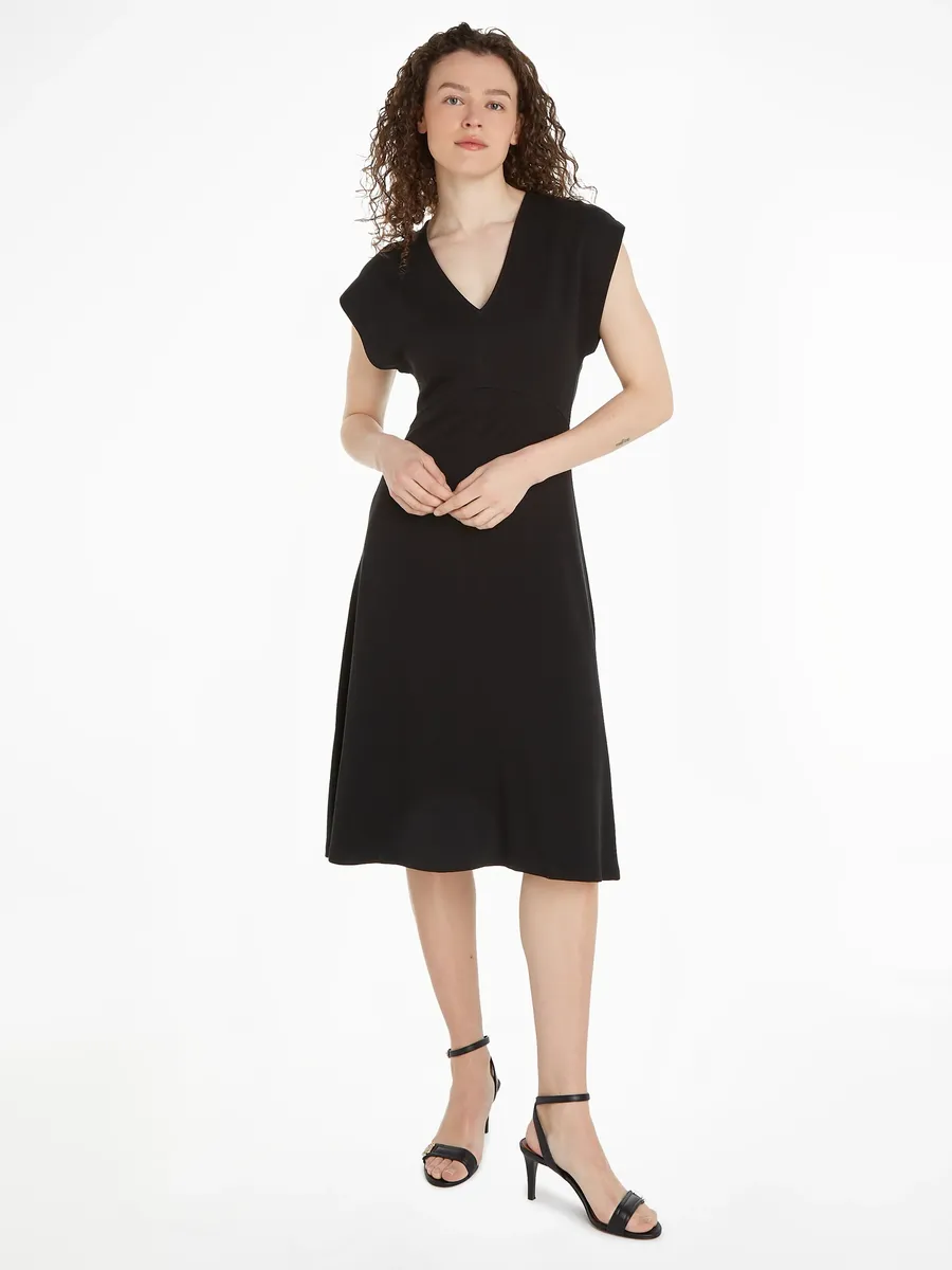 Платье из джерси Tommy Hilfiger "SHINY INTERLOCK V-NK NS KNEE DRS" с вышитым логотипом, черный