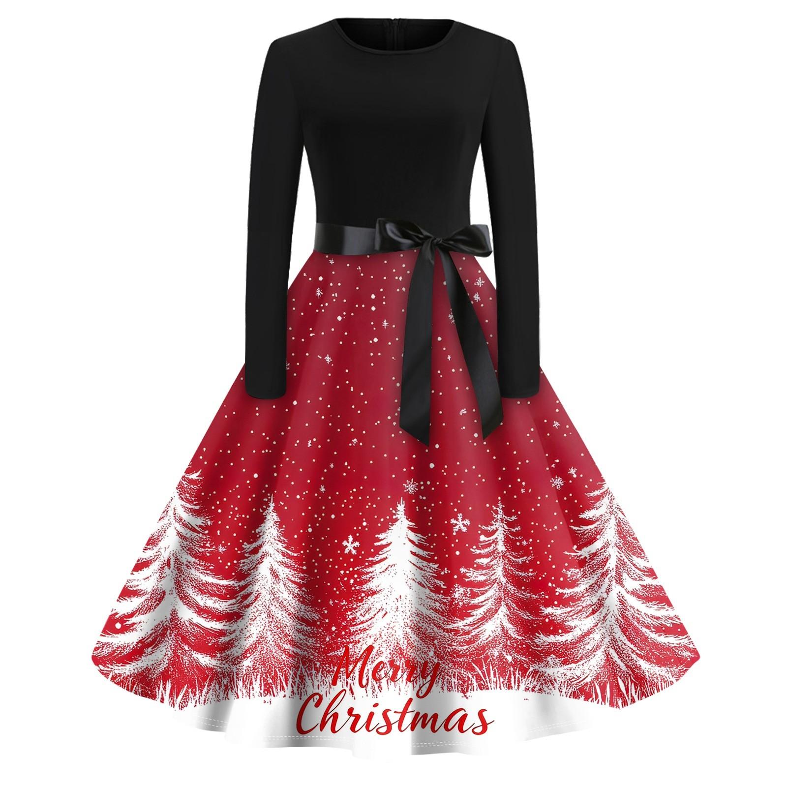 Платье-клеш с принтом на Хэллоуин для женщин с длинным рукавом, повседневные платья с круглым вырезом и ажурной отделкой XL арбуз красный