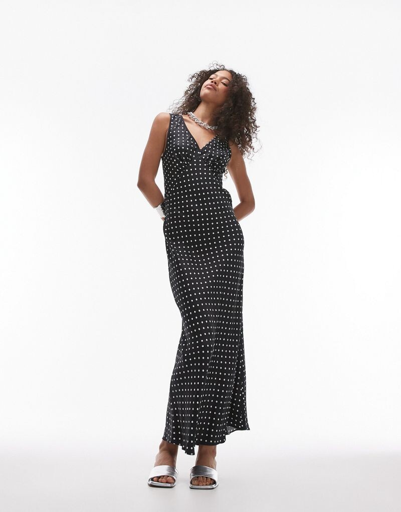 Платья от TopshopЭто TopshopТочечный дизайнV-образный вырезБез рукавов.Облегающий крой.