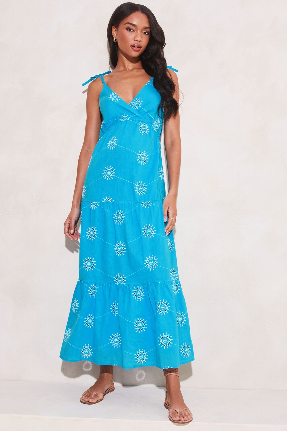 Платье макси в стиле ампир и английской вышивкой Lipsy, синий