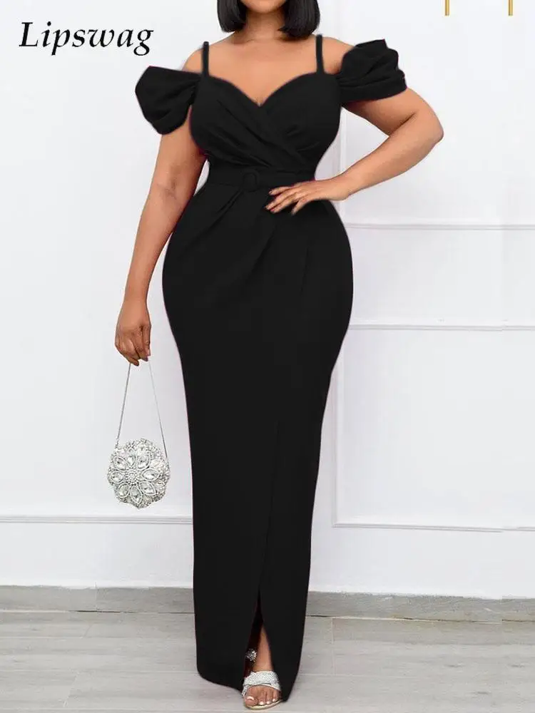 Платье-макси на бретельках, с коротким рукавом и открытыми плечами