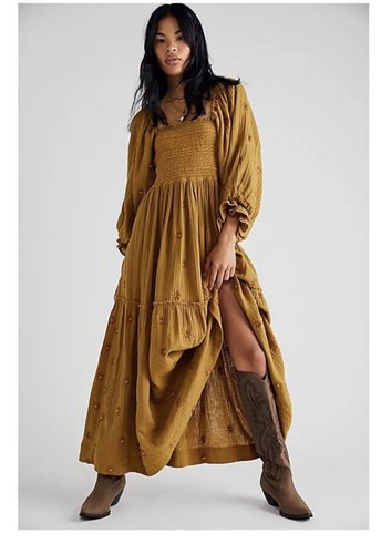 Платье макси со сборками и вышивкой Free People Dahlia Dusted Military комбо, Dusted military green