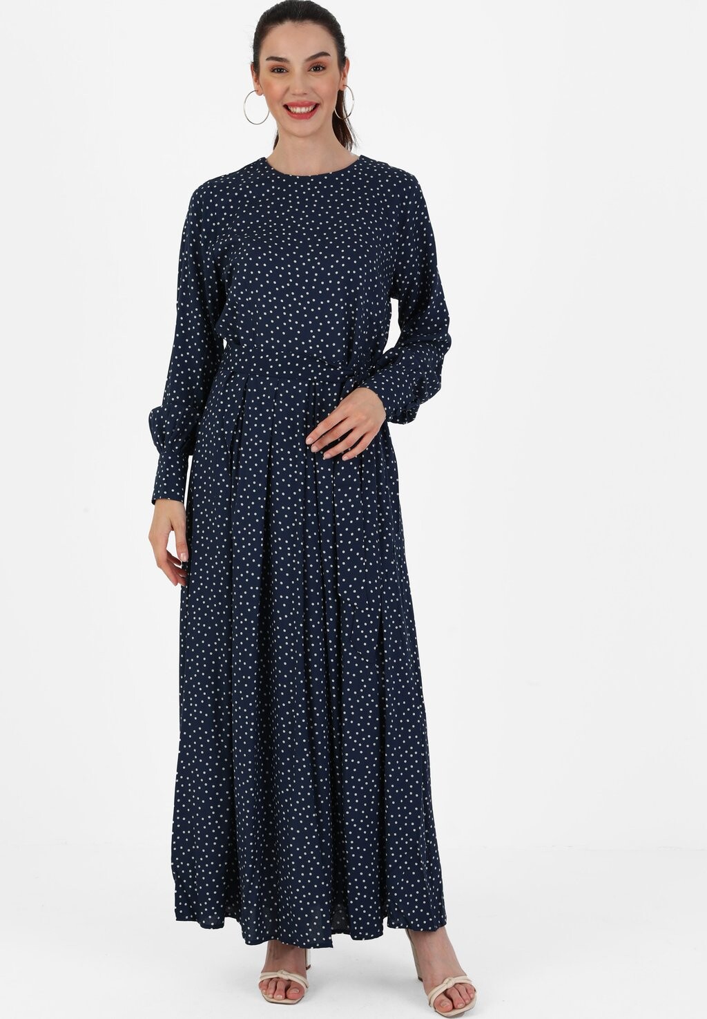 Платье макси POLKA DOTTED PATTERN TAVIN Modanisa, цвет navy blue white