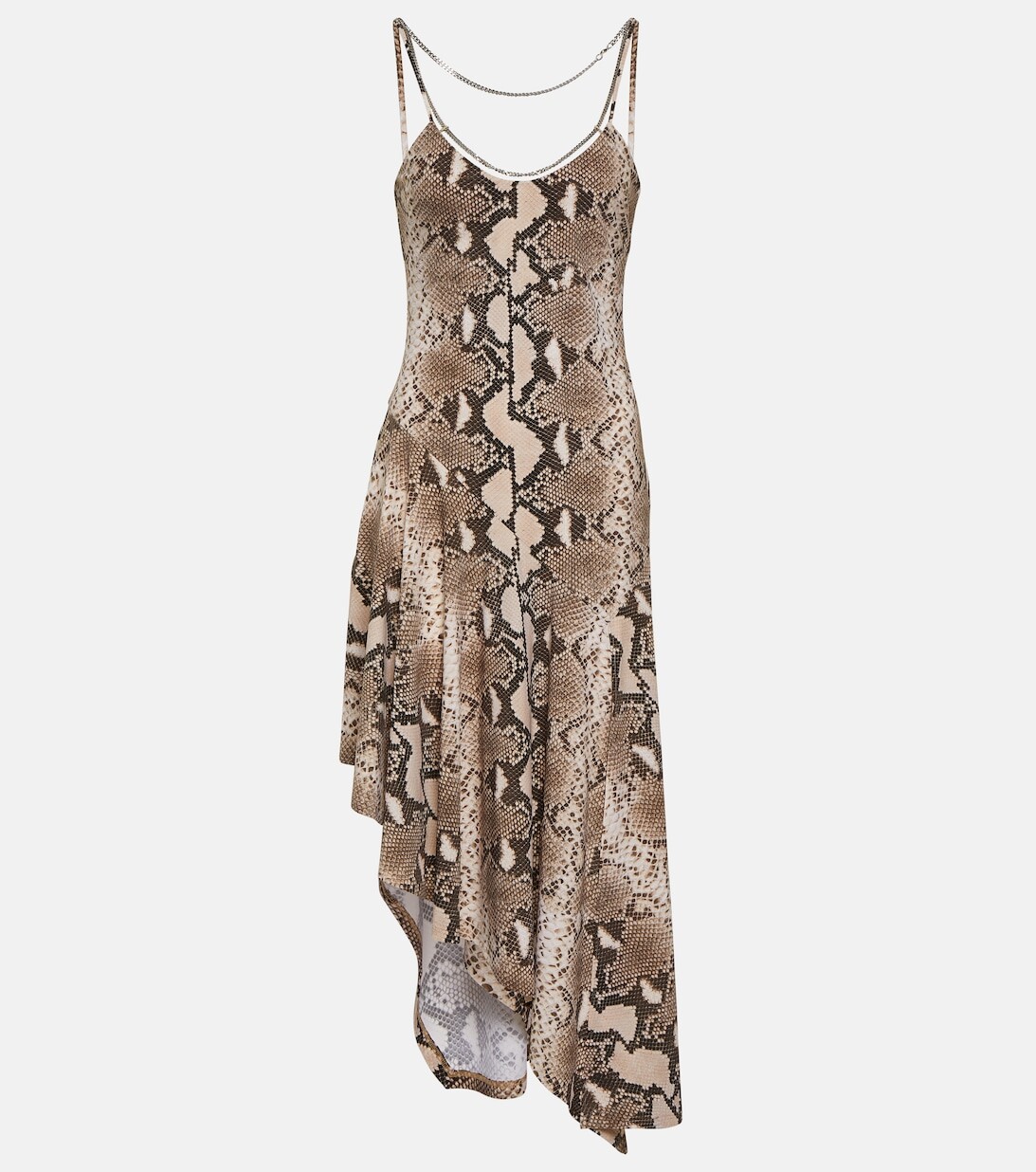 Платье миди асимметричного кроя со змеиным принтом STELLA MCCARTNEY, коричневый