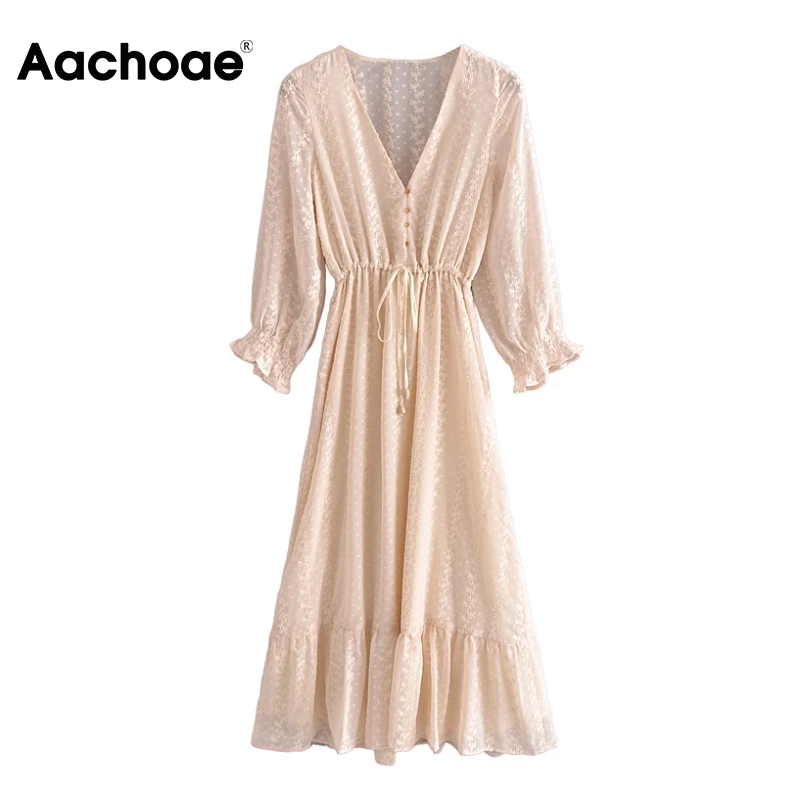 Платье-миди женское ТРАПЕЦИЕВИДНОЕ с V-образным вырезом и рукавом-бабочкой