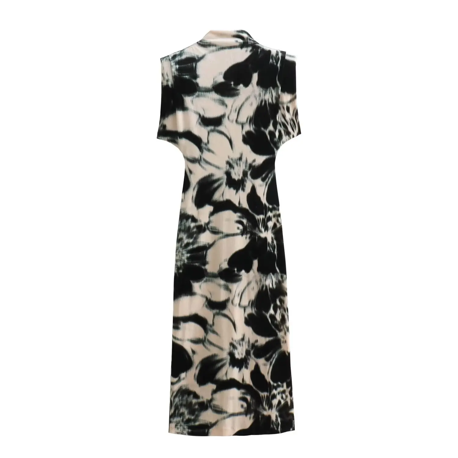 Платье-миди женское бархатное с цветочным принтом, высоким воротником и молнией сзади