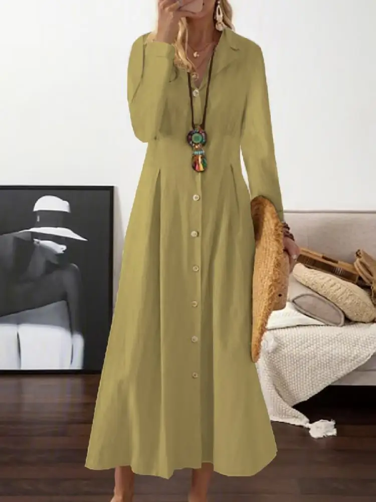 Платье-миди женское демисезонное Плиссированное однотонное на пуговицах с лацканами