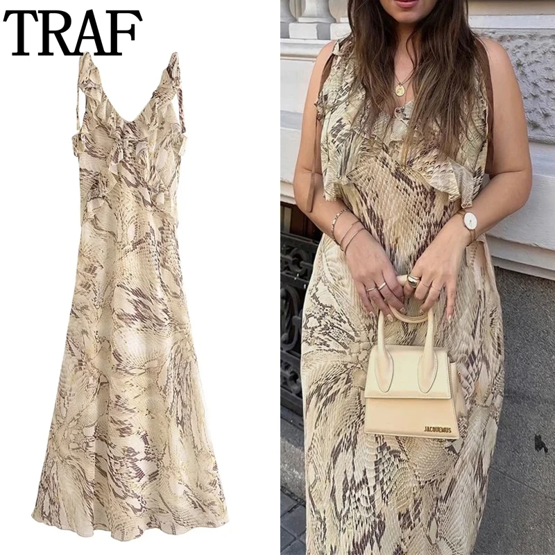 Платье-миди женское летнее длинное без рукавов с оборками и открытой спиной