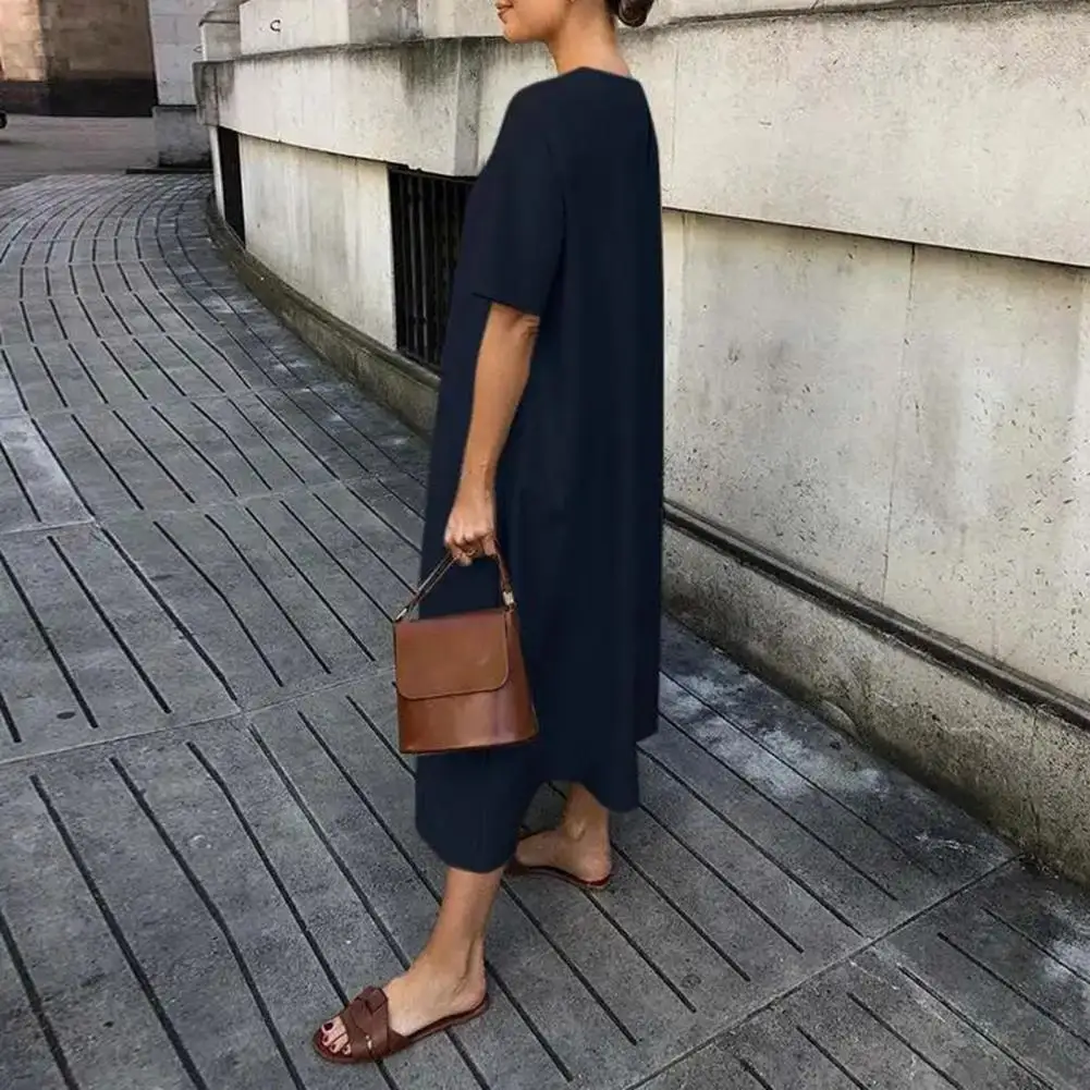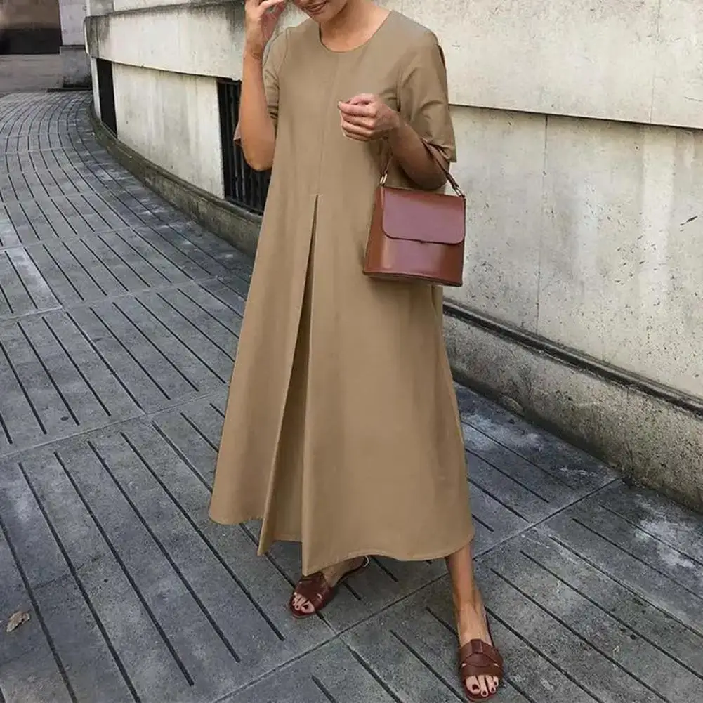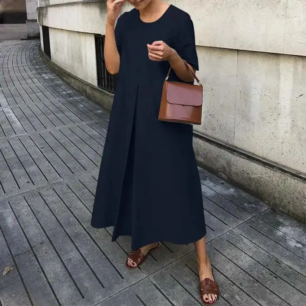 Платье-миди женское однотонное ТРАПЕЦИЕВИДНОЕ с круглым вырезом и коротким рукавом