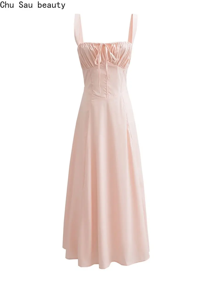 Платье-миди женское с квадратным вырезом, бантом на груди и открытой спиной