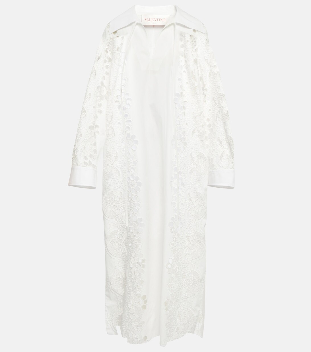 Платье миди из хлопка с вышивкой VALENTINO, белый