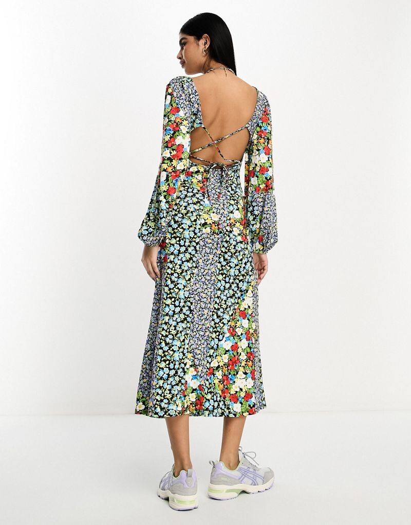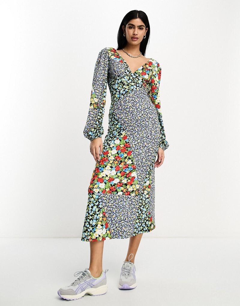 Платье миди с длинными рукавами и v-образным вырезом ASOS