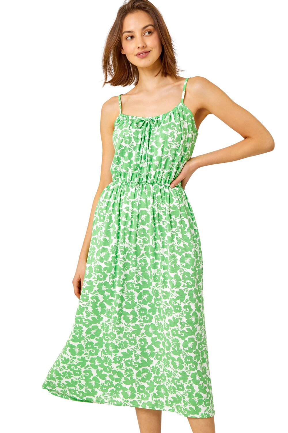 Платье миди с завязками на бретелях и цветочным принтом Roman, зеленый
