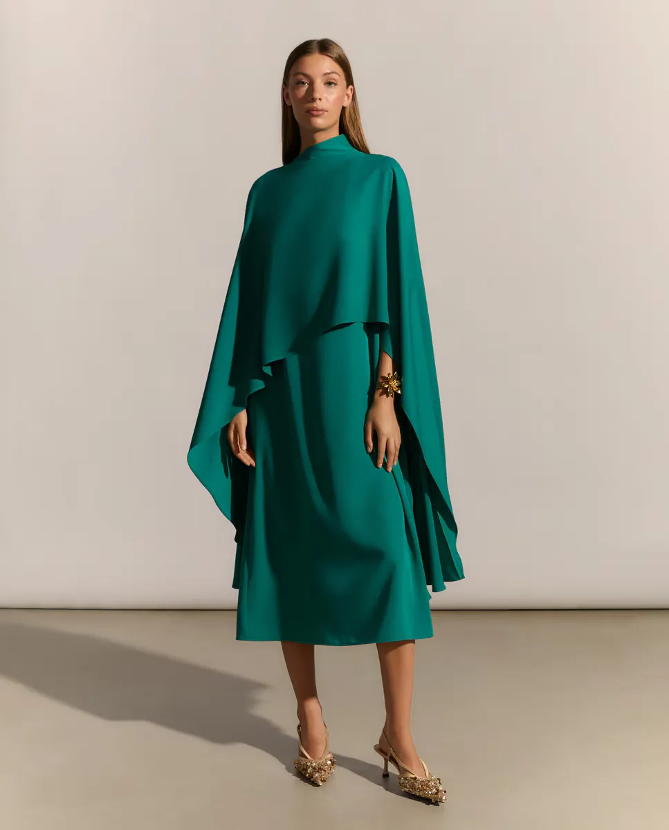 Платье миди с накидкой Woman Fiesta El Corte Inglés, зеленый