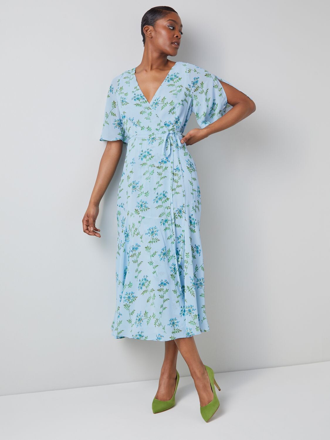 Платье миди с поясом и завязками LKBennett Cole, синий/мульти