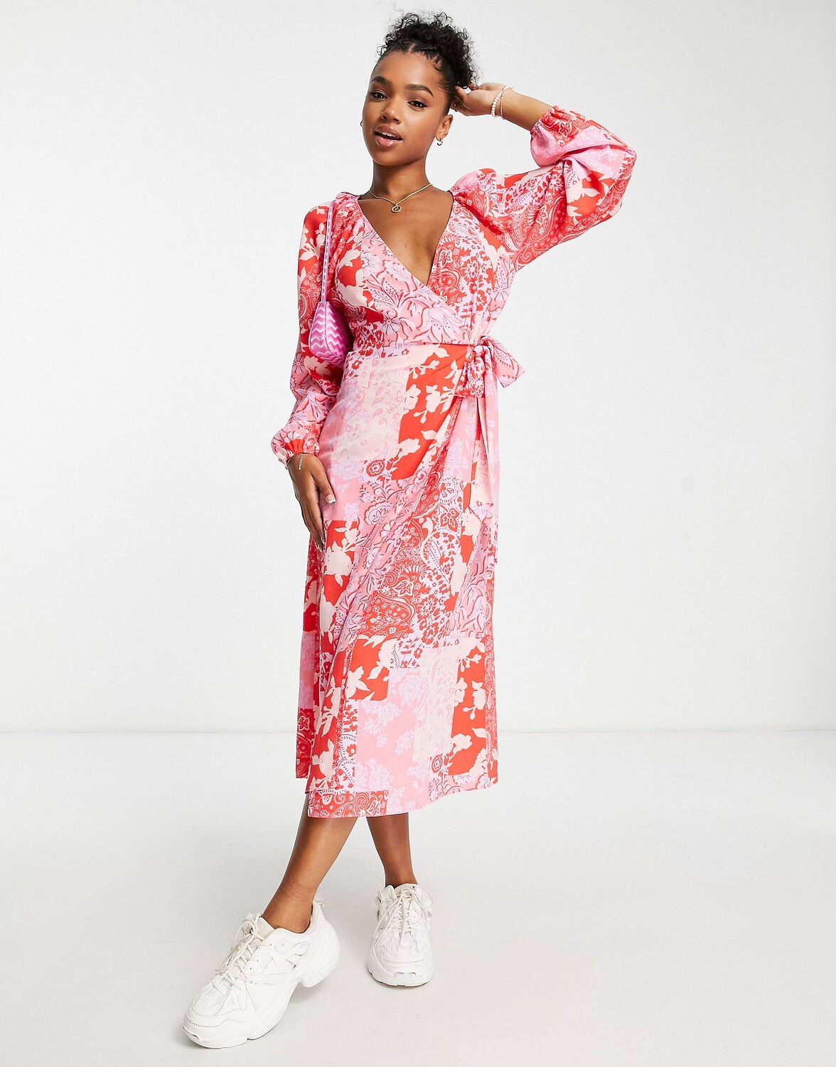 Платье миди с поясом ASOS DESIGN, розовый/красный