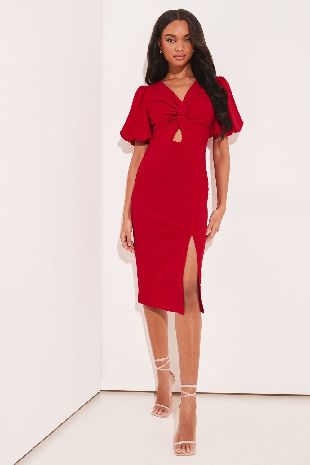 Платье миди с рукавами-фонариками и вырезом Lipsy, красный