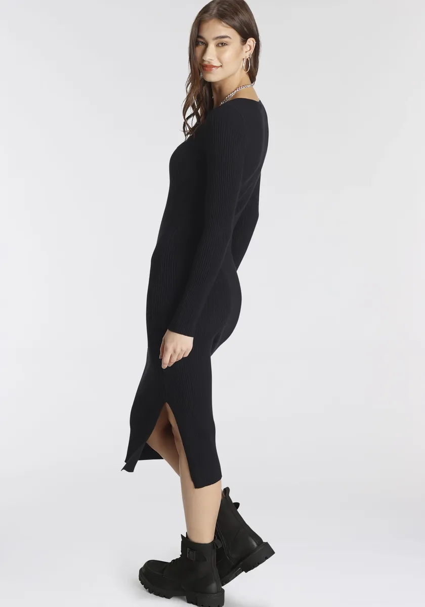 Вязаное платье от AJC. Уютная смесь вискозы для мягкого комфорта Очень облегает фигуру С разрезом сбоку Модный вид