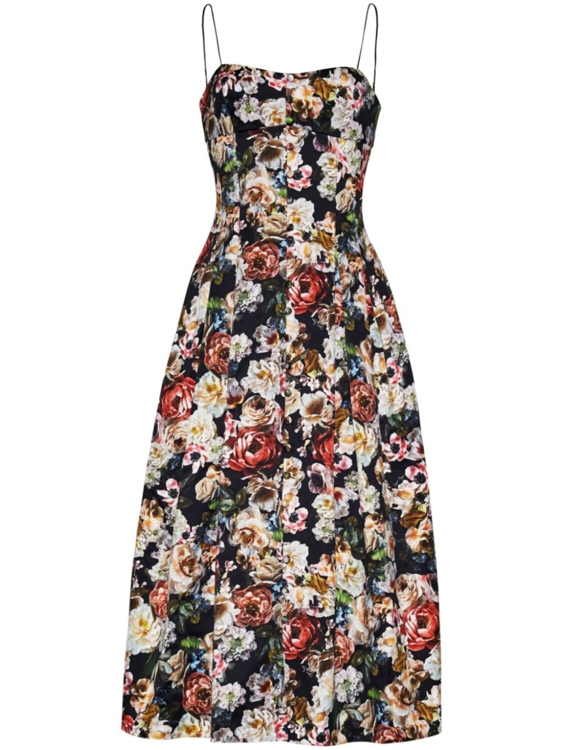 Платье миди Rickie с цветочным принтом Adam Lippes, черный