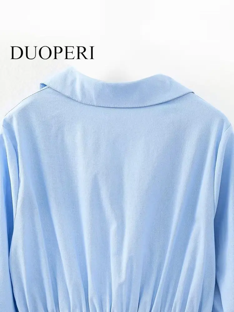 Платье-мини женское однобортное с поясом на резинке и длинным рукавом
