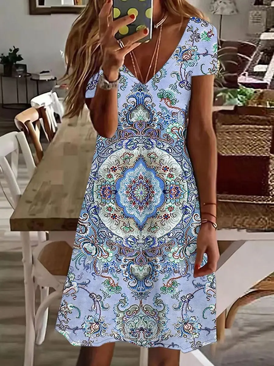 Платье-мини женское повседневное с V-образным вырезом и коротким рукавом