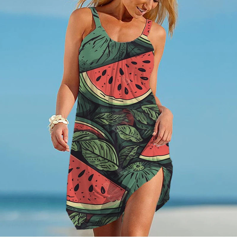 Платье на бретельках для женщин, платье с 3D принтом арбуза, модное повседневное свободное платье на бретельках для лета