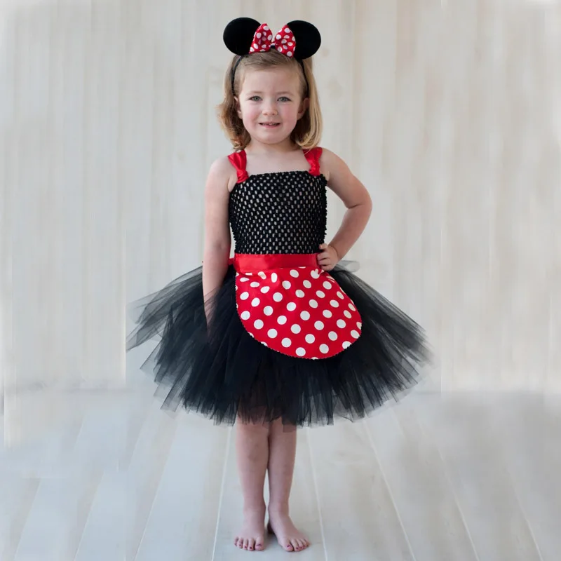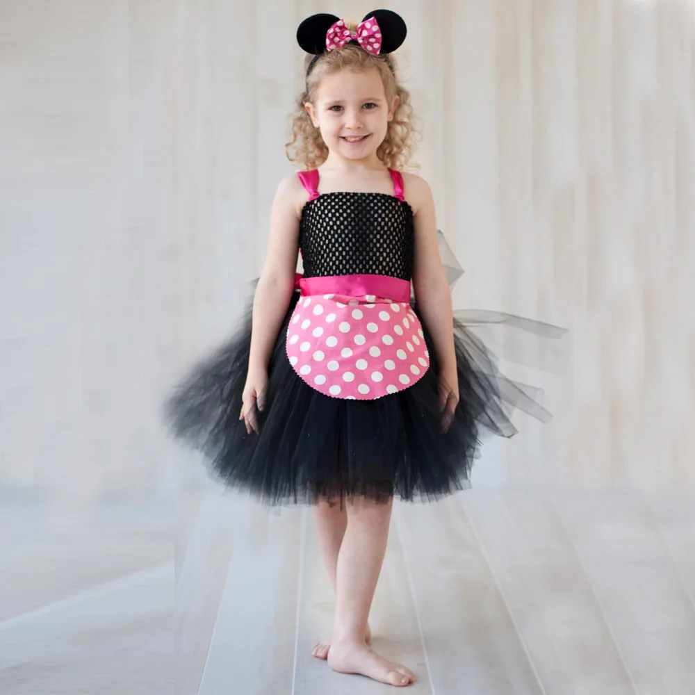Платье-пачка для девочек, черное вязаное крючком платье в горошек с нагрудником и бантом для волос
