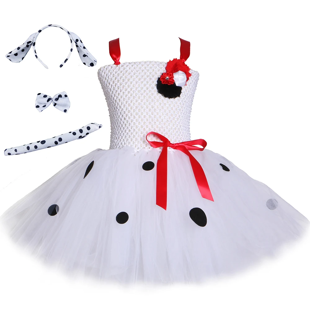 Платье-пачка с далматинской собакой для маленьких девочек, белый, черный, пятнистые животные, костюм на Хэллоуин для детей, малышей, щенков, одевающийся наряд