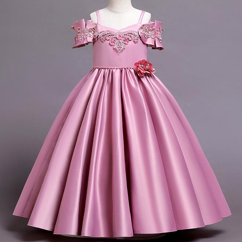 Платье принцессы для девочек, элегантное свадебное выпускное вечернее платье с цветочным принтом, белое кружевное вечернее платье для первого причастия для девочек 140