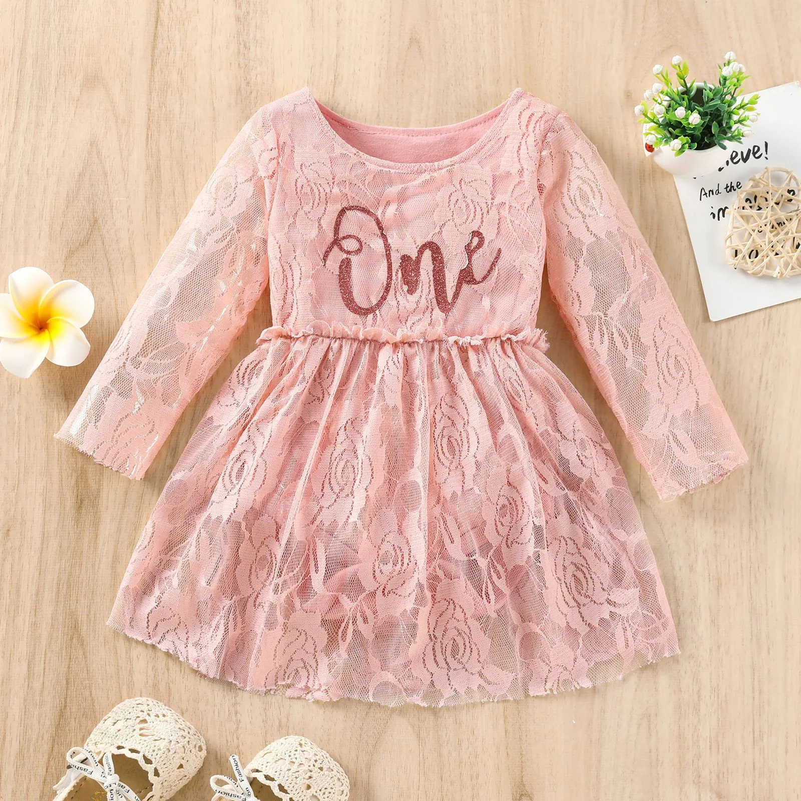 Платье принцессы для новорожденных 0-24 месяцев, кружевное розовое Тюлевое платье с длинным рукавом и надписью, одежда для принцесс, весна-ос...