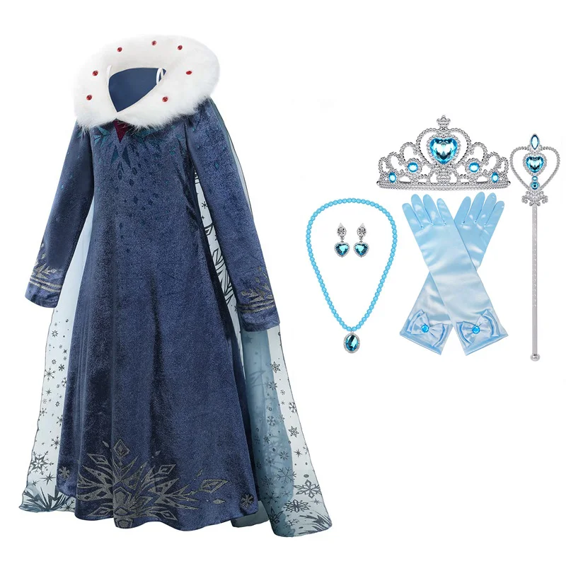Платье принцессы с меховым воротником и часами Эльзы и Анны для косплея, костюм на Хэллоуин, Рождество, костюм Aisha для осени и зимы