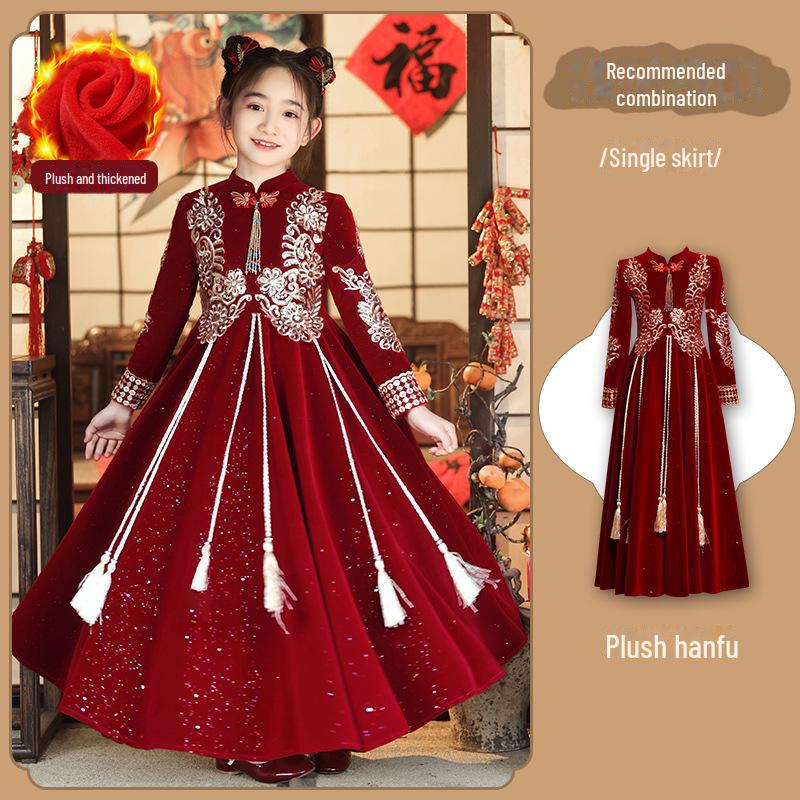 Платье принцессы ханьфу из бархата: Осенне-зимний наряд для празднования Нового года в китайском стиле для девочек 140 cm