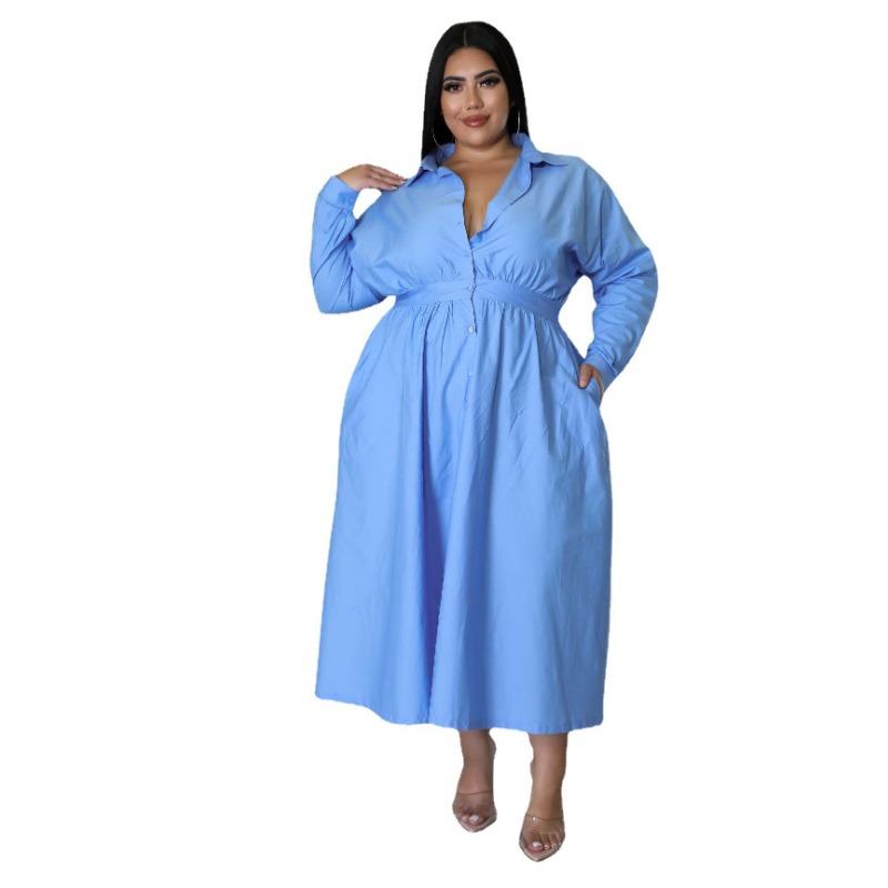 Платье-рубашка большого размера для женщин с длинным рукавом, однотонное, весна-осень 5XL синий