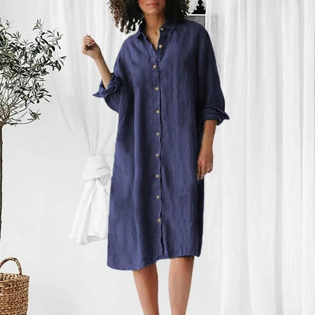 Платье-рубашка женское средней длины с воротником с отворотом и длинным рукавом
