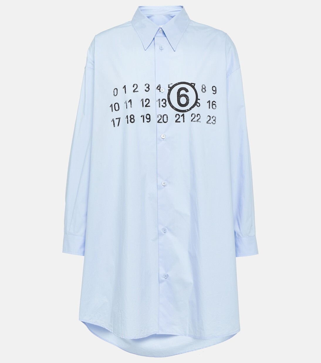 Платье-рубашка из хлопкового поплина с принтом Mm6 Maison Margiela, синий