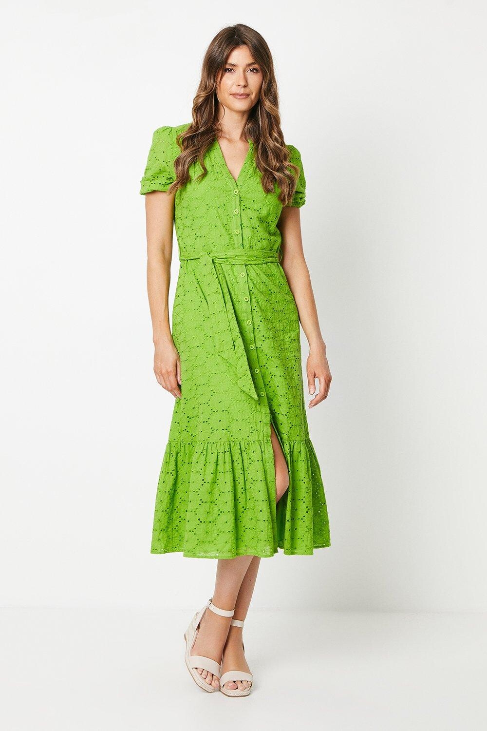 Платье-рубашка миди с поясом Broderie Wallis, зеленый