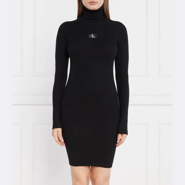 Платье с высоким воротником и логотипом Calvin Klein, черный