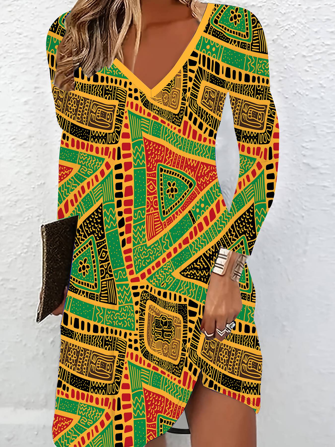 Платье с длинными рукавами с 3D-принтом в винтажном стиле Эксклюзивная трендовая вещь для женщин на осень и зиму 2XL