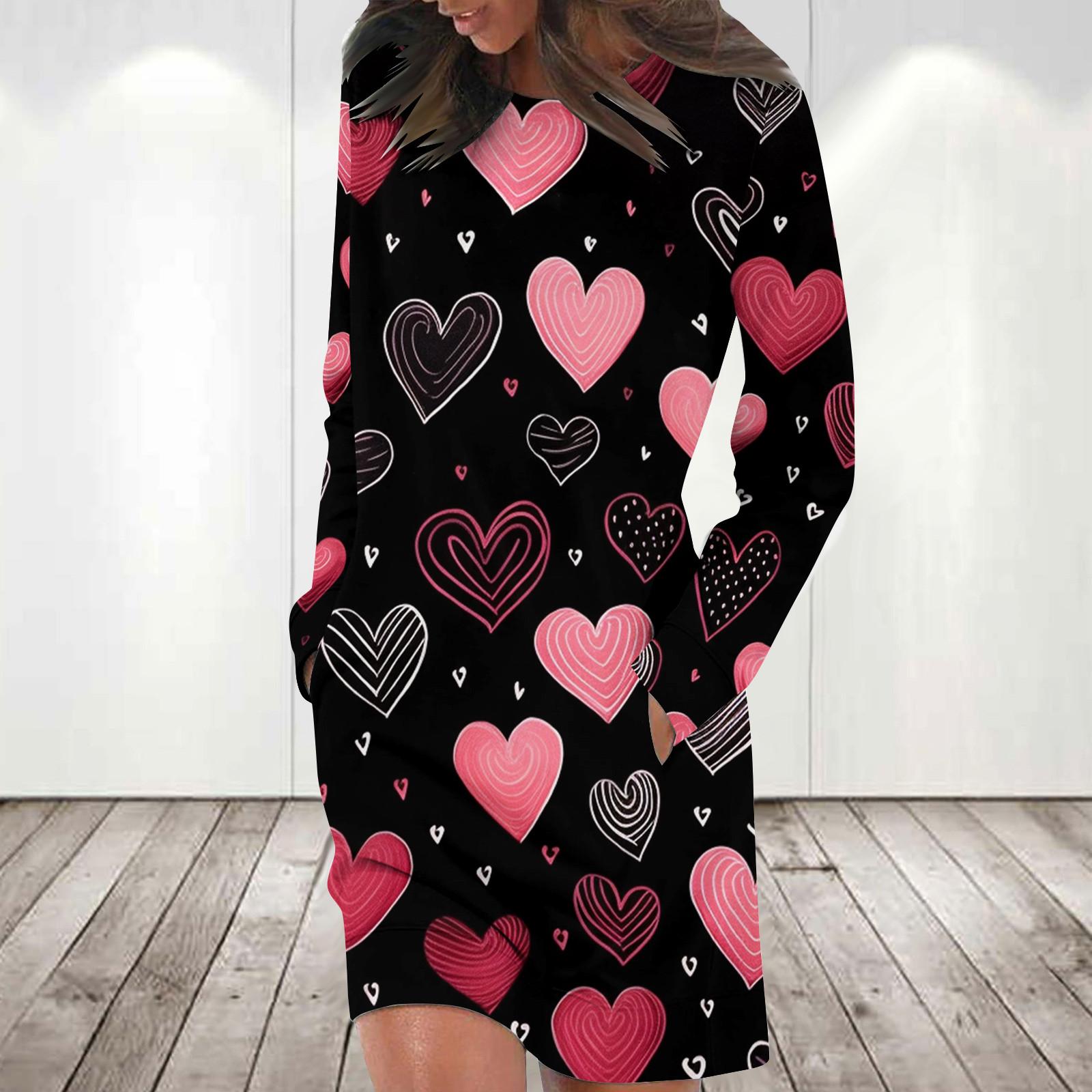 Платье с длинным рукавом для женщин, повседневный пуловер с принтом, платье-свитер, осень L чёрный