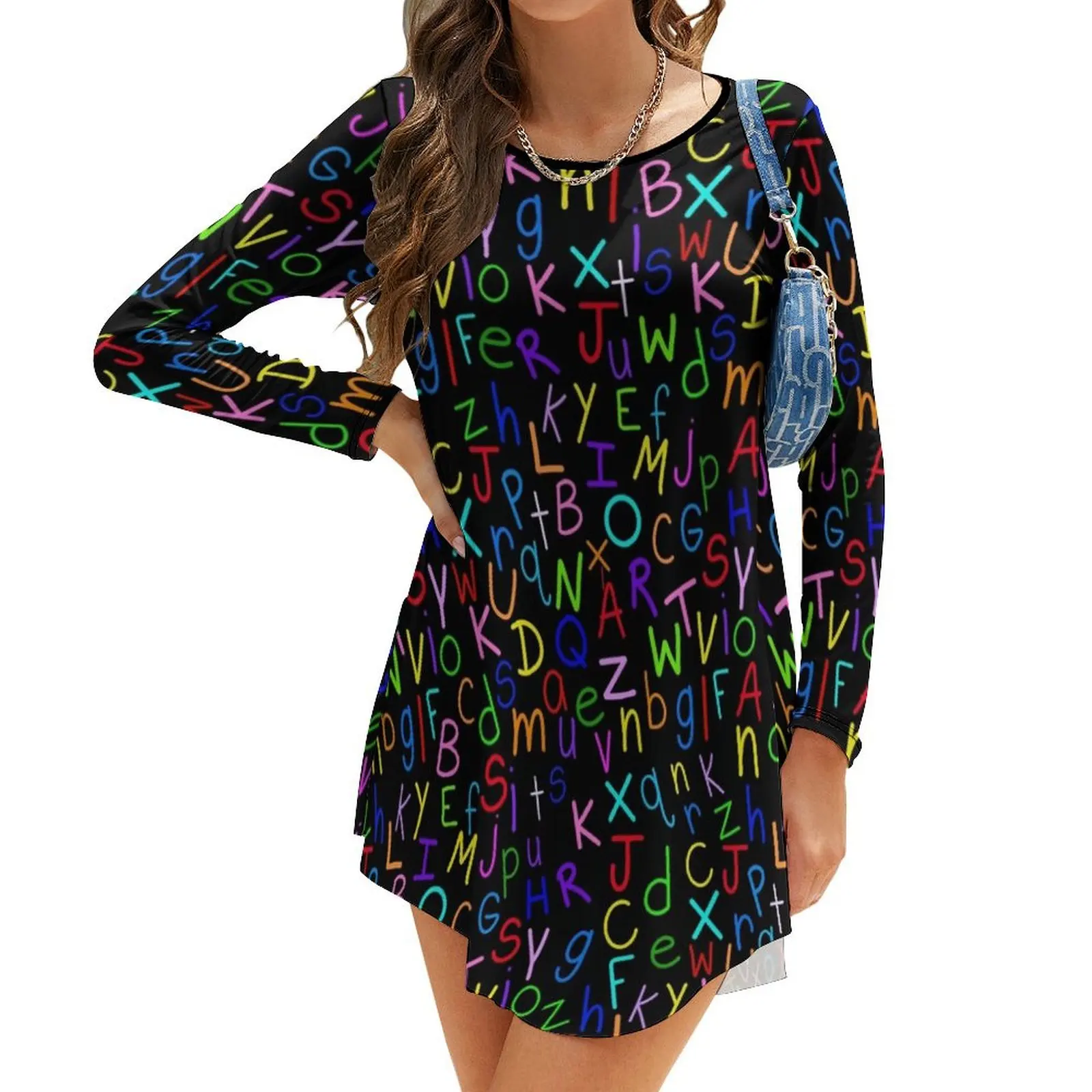 Платье с длинным рукавом и принтом алфавита для выпускного вечера, летняя одежда