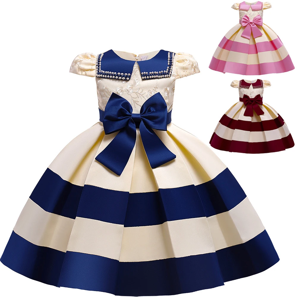 Платье с жемчугом для девочек, элегантное вечернее платье, бальное платье, юбка принцессы с бантом, смокинг для выступлений на день рождения...