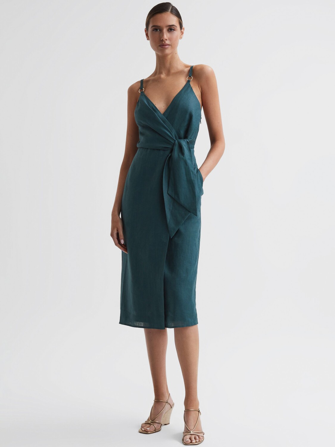 Платье с запахом без рукавов Reiss Elsie, темно-бирюзовый