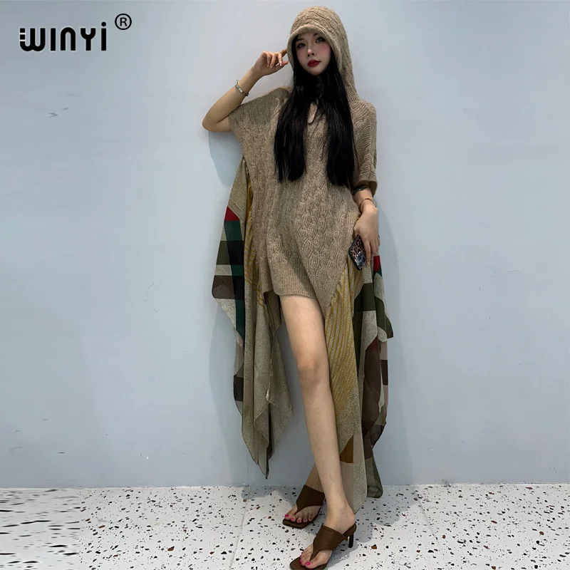 Платье с капюшоном WINYI, комфортное, теплое, модное, кафтан, праздничное платье, элегантное, для Африки, Женское зимнее платье, кафтан для женщин, зимнее платье