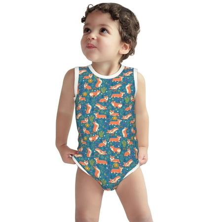Vsdgher Corgi with Flowers Print Baby Unisex Baby Cotton Sleeveless Bodysuits Soft and velvety comfortable and breathable